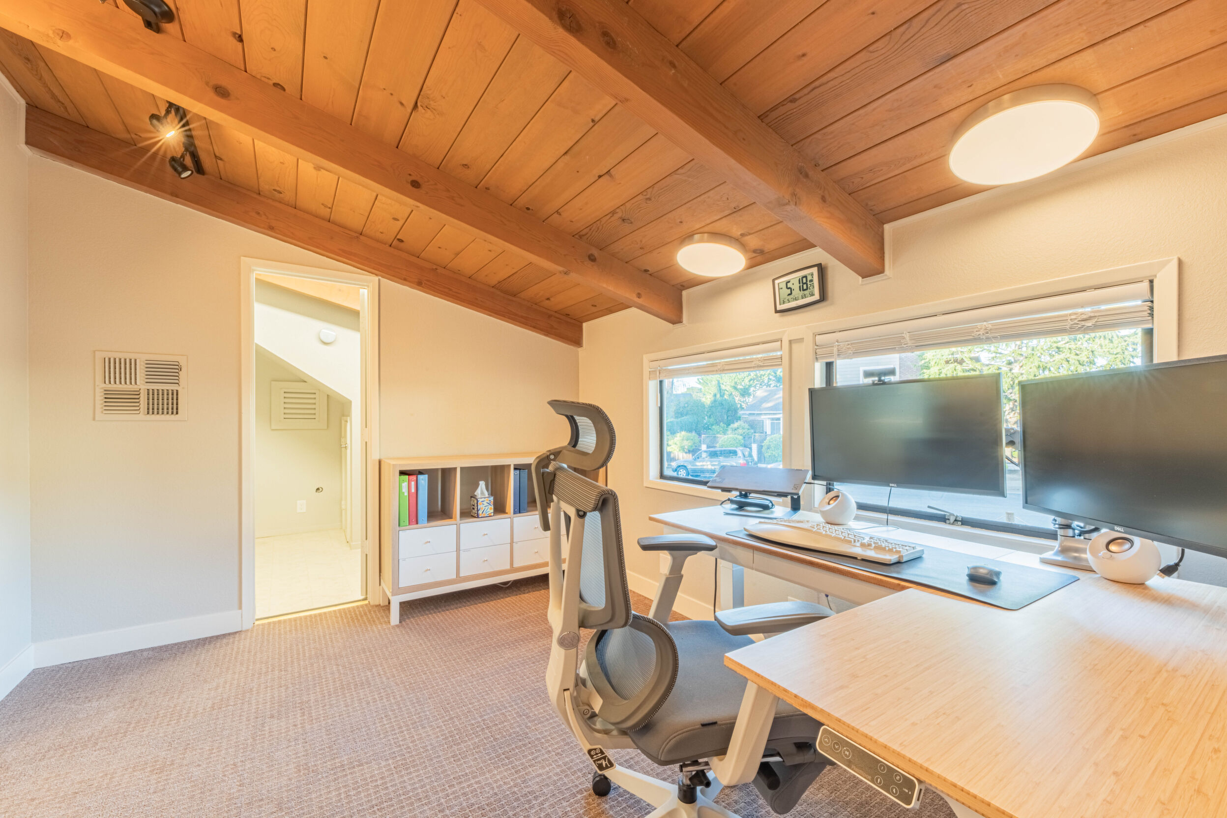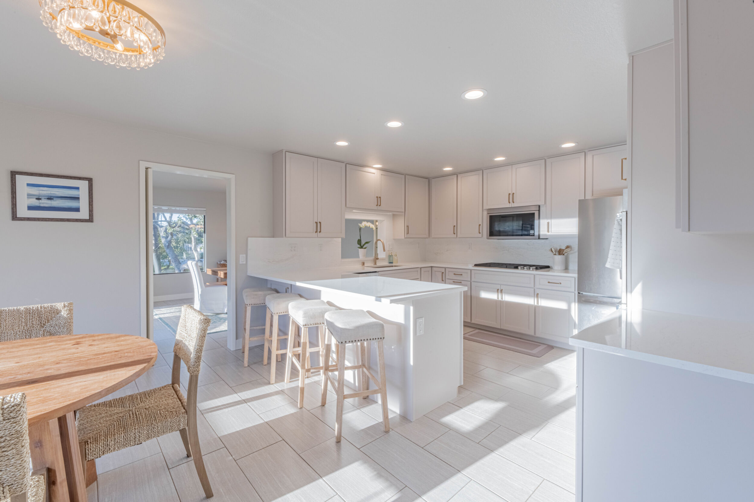 Nestled in Monterey's coveted Deer Flats neighborhood, this 3,125-square-foot home offers modern style in a sunny, park-like greenbelt setting near Jacks Peak and quiet, walkable streets. Truly an entertainer's dream, a vaulted entry opens to a flowing floor plan where the living room, dining area, chefs' kitchen, and family room connect seamlessly. Abundant windows create a light-filled, airy feel throughout. The home features four bedrooms, two and a half baths, upgraded bathrooms, new carpeting, and contemporary finishes. An office off the primary suite and a separate flex/bonus room, ideal as a kid's playroom, add versatility. An attached two-car garage and generous interior storage provide everyday convenience. Outdoors, enjoy a spacious deck, hardscape terraces, and a dedicated play area. Just minutes from downtown, the Wharf, beaches, Carmel, and nearby shopping and grocery stores, this turnkey property blends comfort, function, and location.