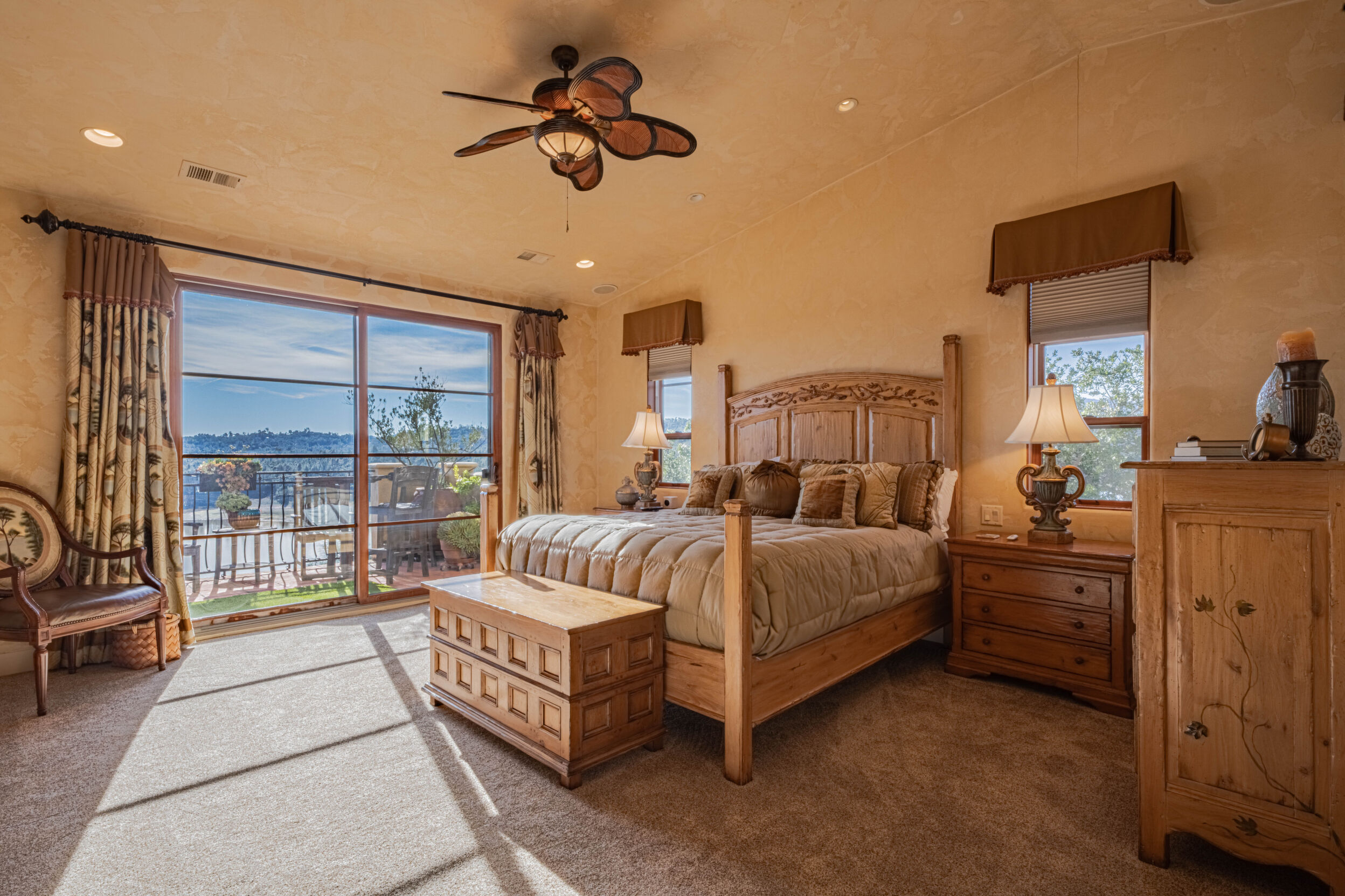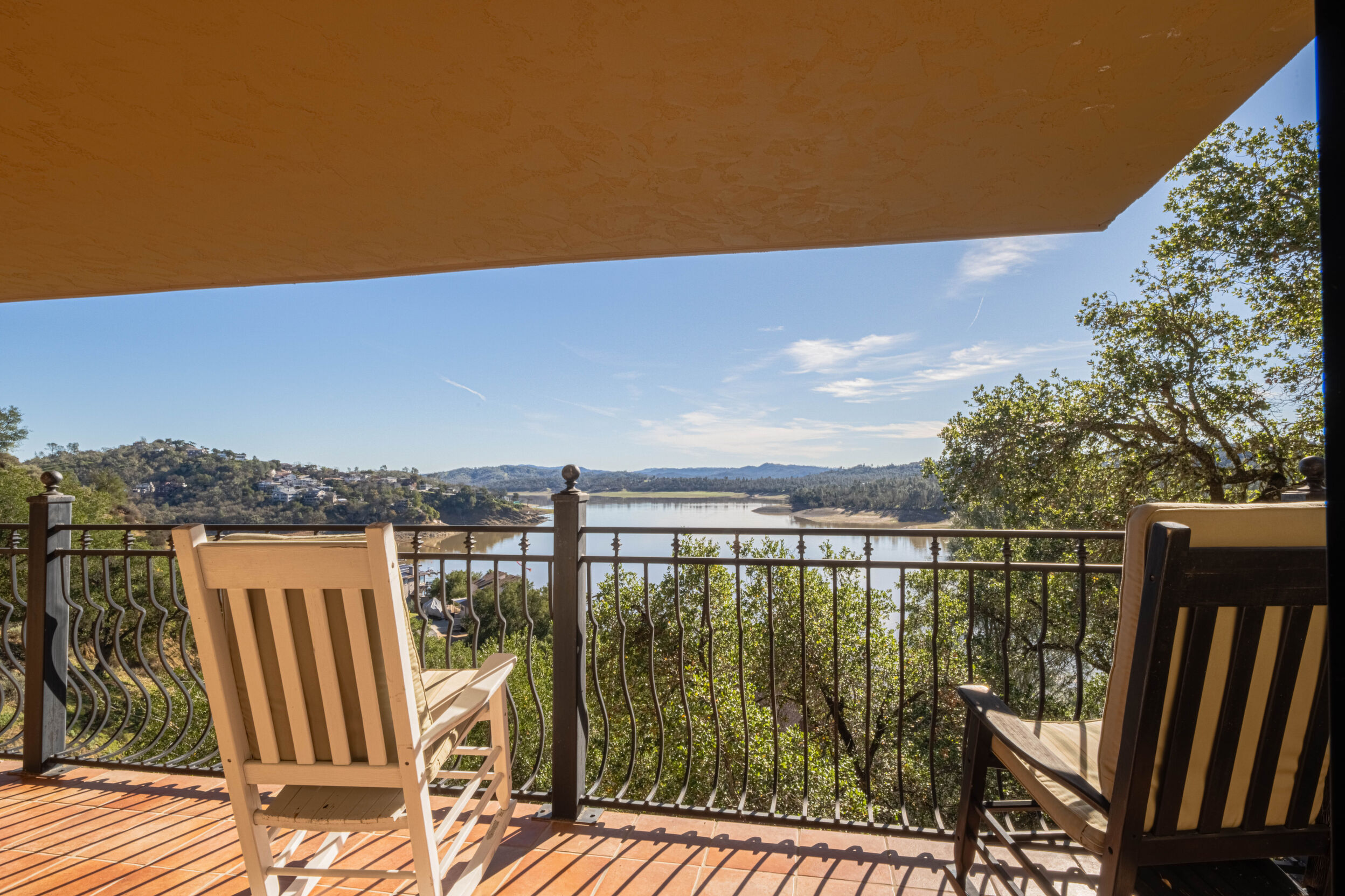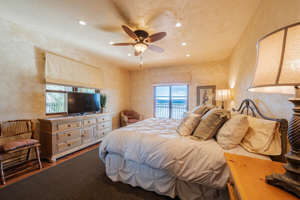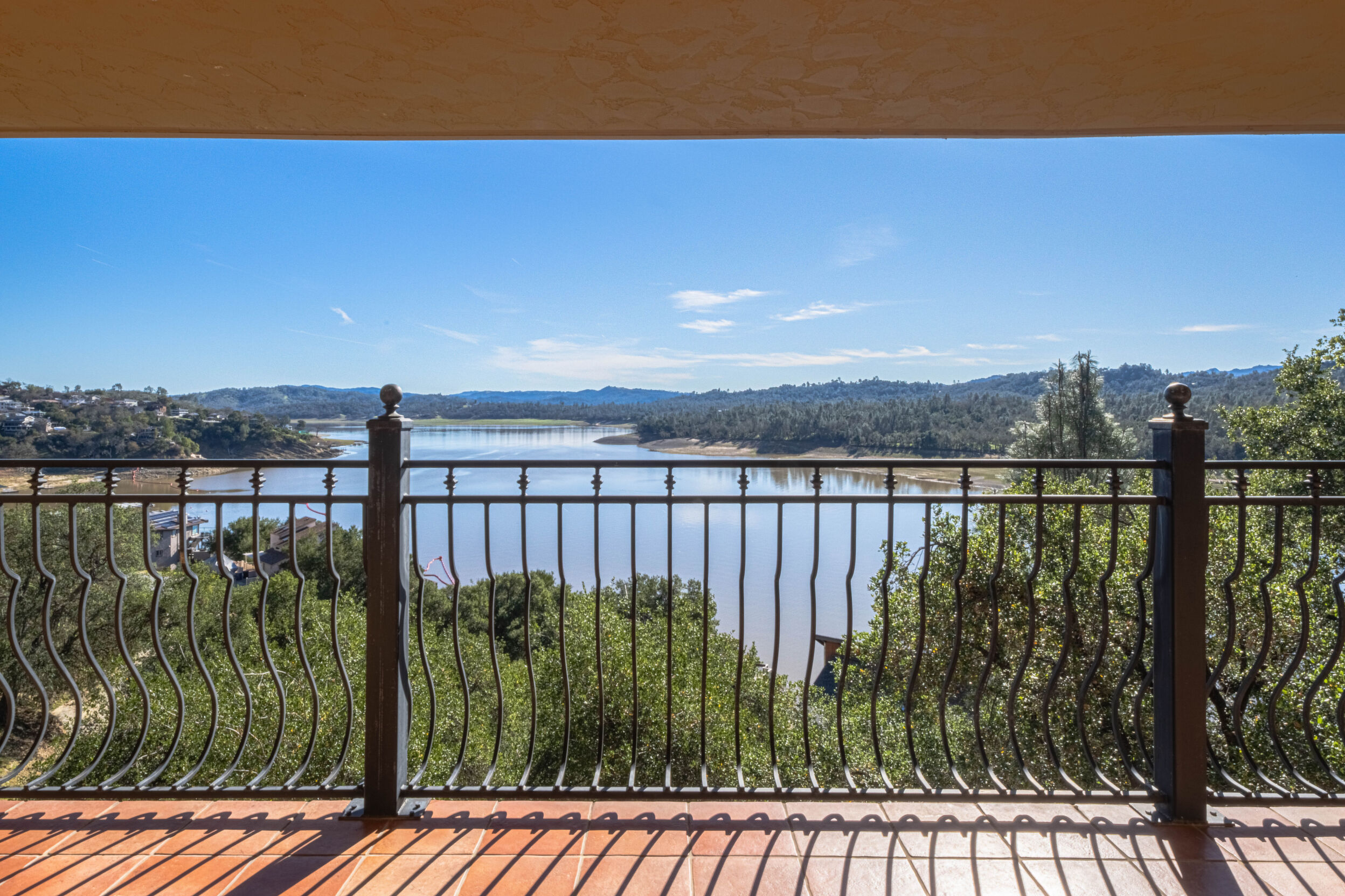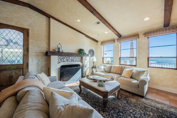 Welcome to 8730 Bluff Ct in Oak Shores at Lake Nacimiento where lakefront living is front and center! Set above the water with wide-open views, this custom-built 5BD/5.5BA home offers approx. 4,502 sq. ft. designed for either relaxed weekends or full-house gatherings. The main level sets the tone with exposed beams, rich woodwork, and a spacious kitchen that opens to the living and dining areas. The primary suite is also on this level, creating a comfortable, easy everyday layout. Step outside and you're immediately pulled toward the views, expansive decks and balconies made for morning coffee, sunset dinners, and long summer nights with friends. Downstairs, the home opens up even more. The terrace level features multiple bedrooms, including three with en-suite baths, along with a massive recreation room, ready for game tables, movie nights, or overflow guests. The lower level offers additional bedrooms, a wine cellar, a large sitting area, and additional storage, ideal for longer stays or hosting extended family. An oversized 3-car garage leaves room for boats, gear, and everything that comes with the lake lifestyle. With over 1,700 sq. ft. of balcony space and a thoughtful multi-level layout, this is a home built to be enjoyed by all!