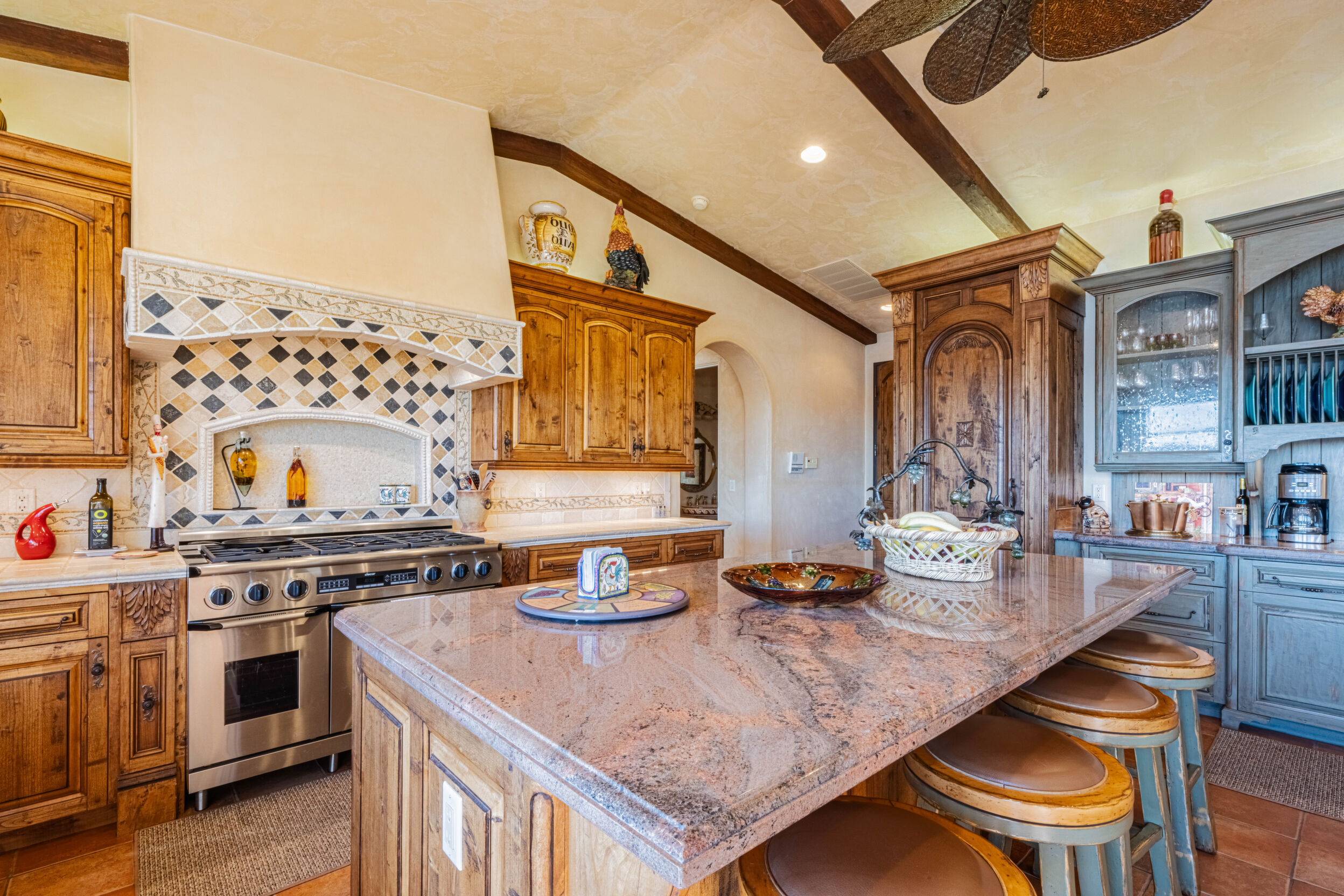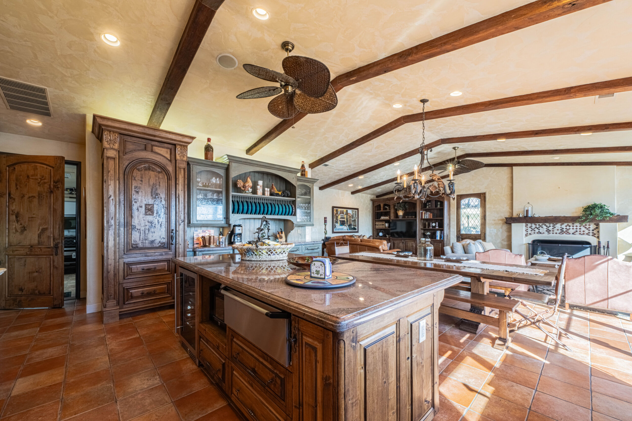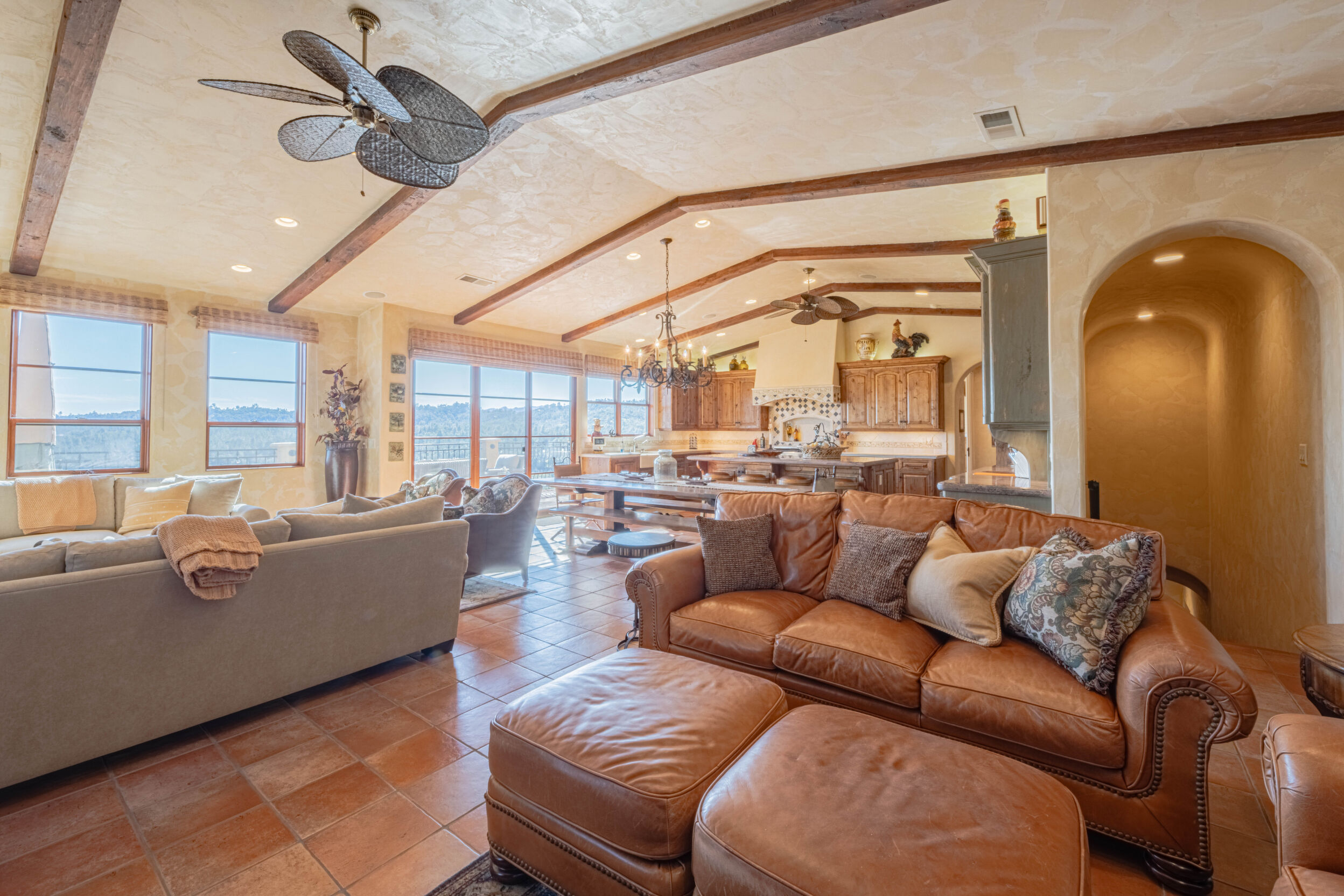Welcome to 8730 Bluff Ct in Oak Shores at Lake Nacimiento where lakefront living is front and center! Set above the water with wide-open views, this custom-built 5BD/5.5BA home offers approx. 4,502 sq. ft. designed for either relaxed weekends or full-house gatherings. The main level sets the tone with exposed beams, rich woodwork, and a spacious kitchen that opens to the living and dining areas. The primary suite is also on this level, creating a comfortable, easy everyday layout. Step outside and you're immediately pulled toward the views, expansive decks and balconies made for morning coffee, sunset dinners, and long summer nights with friends. Downstairs, the home opens up even more. The terrace level features multiple bedrooms, including three with en-suite baths, along with a massive recreation room, ready for game tables, movie nights, or overflow guests. The lower level offers additional bedrooms, a wine cellar, a large sitting area, and additional storage, ideal for longer stays or hosting extended family. An oversized 3-car garage leaves room for boats, gear, and everything that comes with the lake lifestyle. With over 1,700 sq. ft. of balcony space and a thoughtful multi-level layout, this is a home built to be enjoyed by all!